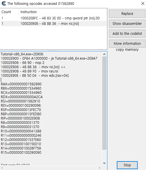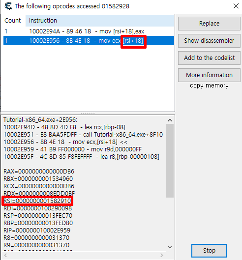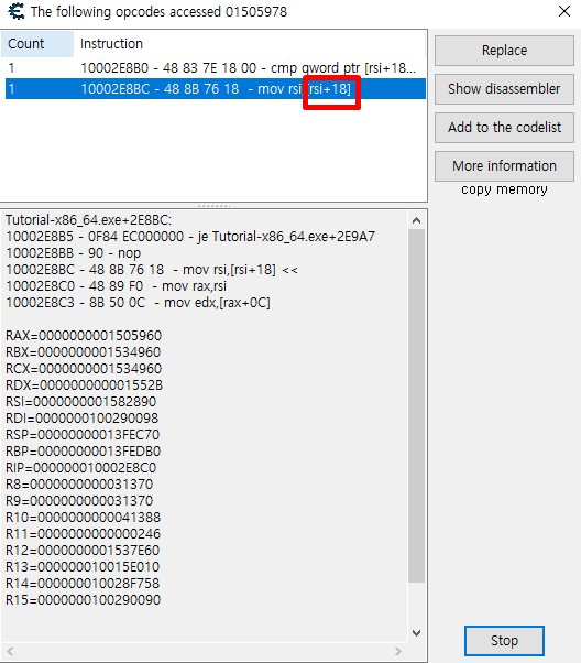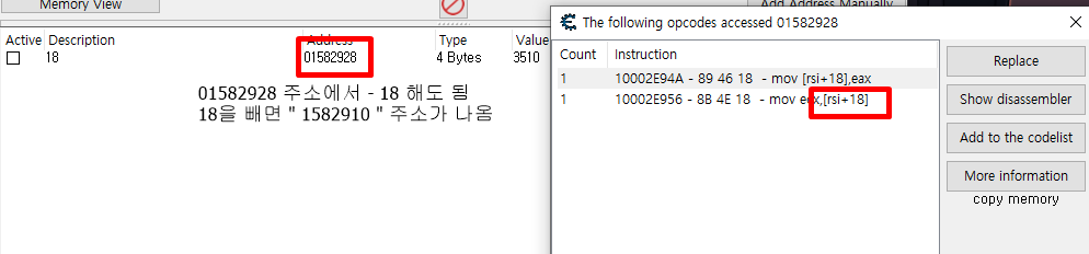 지금 방법은 rsi+18 offset을 이용해서 주소를 찾을 겁니다
