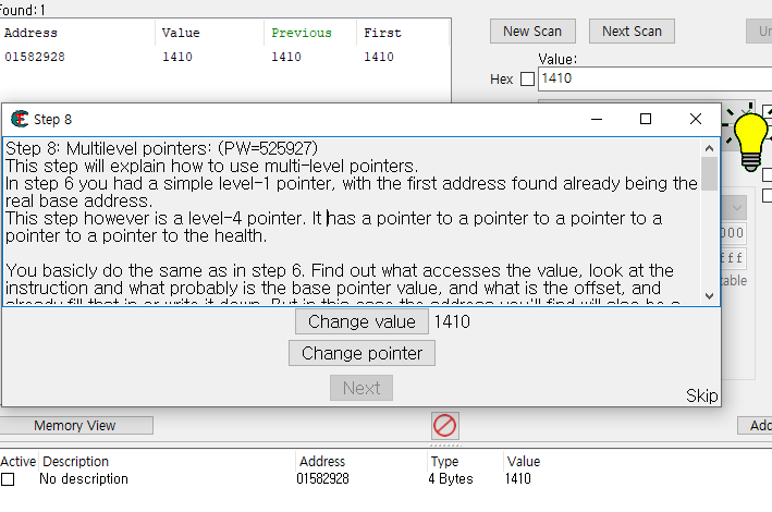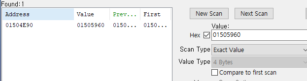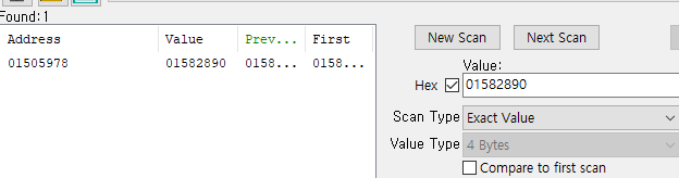포인터를 다 찾게 되면 더 이상 변하지 않는 값은 치트 엔진에서