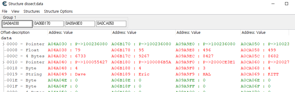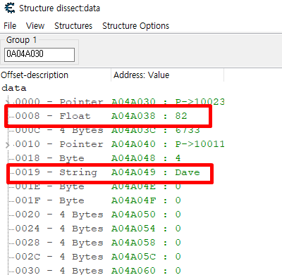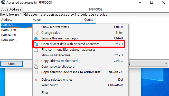 "Open dissect data with selected addresses (Ctrl+D)" 클릭