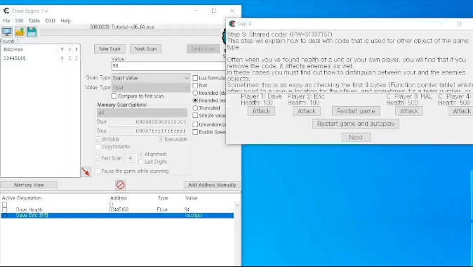 치트엔진 튜토리얼 9 를 하기위해서 구조체 알아보는 방법 입니다 " Player1 , Player2 , Player3 , Player4 "에 관련되어 있는 값을 알 수 있는 구조체를 알아 볼겁니다 " Player1 Dave " 의 체력 값을 스캔