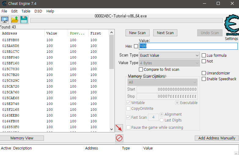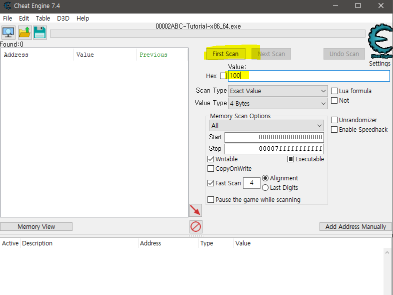 Value 100으로 First Scan 해보자