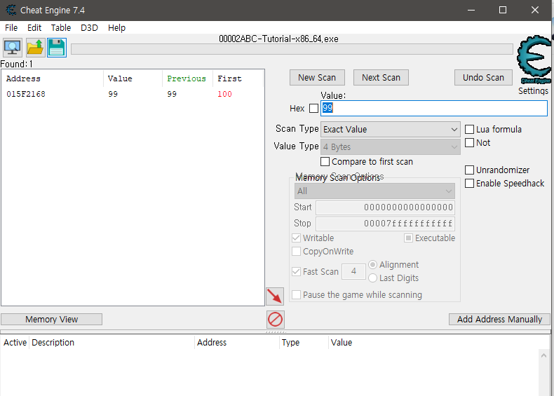 99로 Next Scan하면 값이 하나밖에 안뜬다