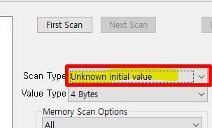 일단 Scan Type을 Unknown initial value로 Fist Scan
