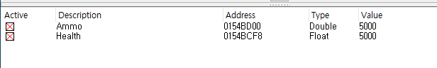 값을 찾아서 Health 와 Ammo 두 값을 모두 5000 이상으로 설정해야 합니다.