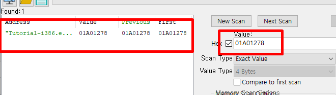 First Scan 하시면 초록색으로 주소가 찾아집니다 .