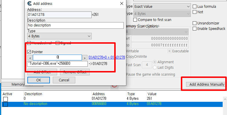 Add Address Manually를 눌러서 Pointer 체크 후